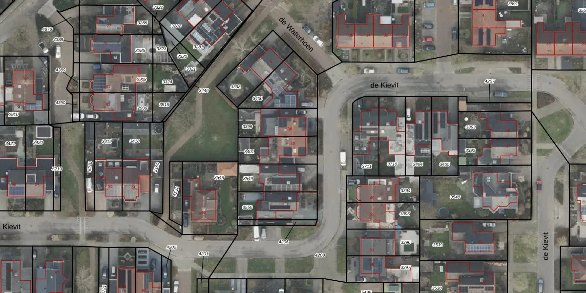 Het perceel waarop de Kievit 40 staat heeft een oppervlakte van 251 m². Dit is een middelgroot perceel. De perceeloppervlakte wordt geregistreerd door het Kadaster. Gedetailleerde informatie over de maten van dit perceel kunt u vinden in het rapport Kadastrale kaart met maatvoering van de Kievit 40.