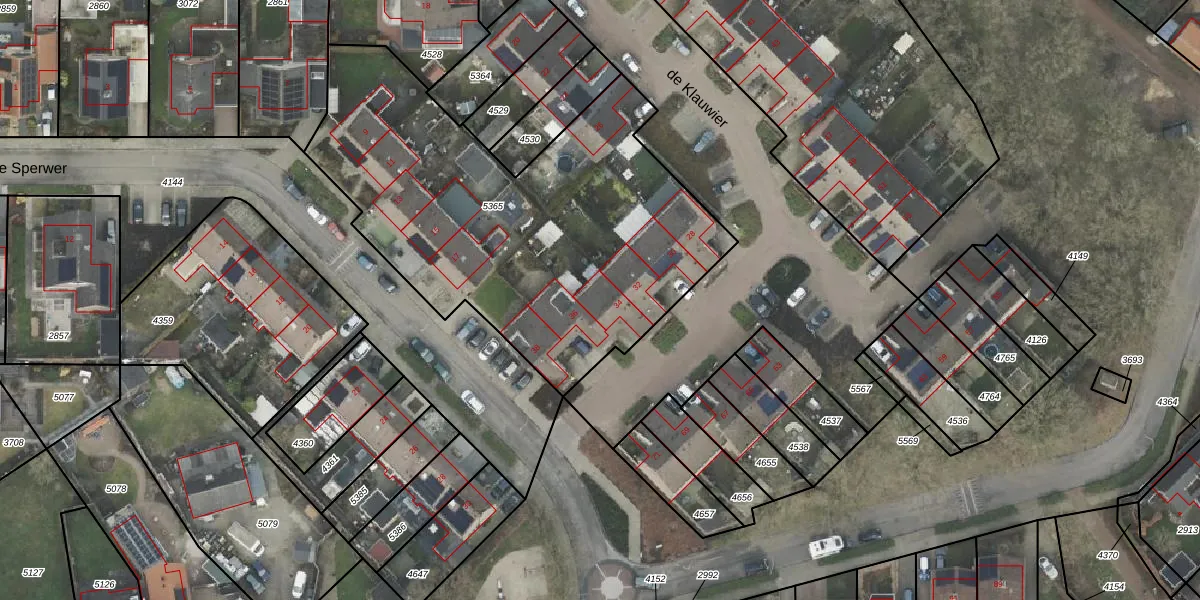 Het perceel waarop de Klauwier 34 staat heeft een oppervlakte van 2128 m². Dit is een zeer groot perceel. De perceeloppervlakte wordt geregistreerd door het Kadaster. Gedetailleerde informatie over de maten van dit perceel kunt u vinden in het rapport Kadastrale kaart met maatvoering van de Klauwier 34.