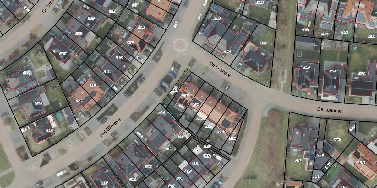 Gebruik de zoekbalk of klik op een perceel voor informatie over de adressen binnen dit perceel.