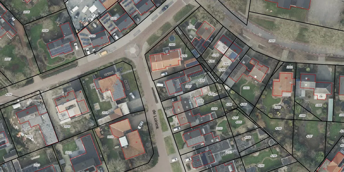 Het perceel waarop de Luinink 3 staat heeft een oppervlakte van 409 m². Dit is een groot perceel. De perceeloppervlakte wordt geregistreerd door het Kadaster. Gedetailleerde informatie over de maten van dit perceel kunt u vinden in het rapport Kadastrale kaart met maatvoering van de Luinink 3.