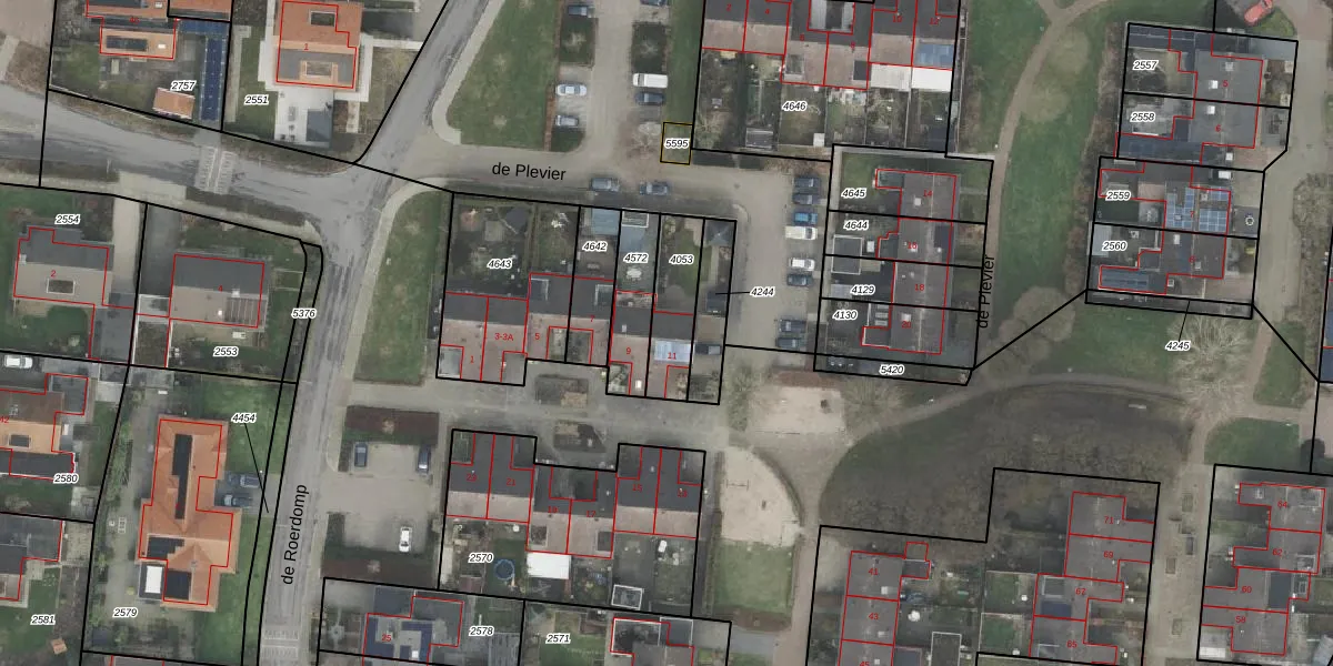Gebruik de zoekbalk of klik op een perceel voor informatie over de adressen binnen dit perceel.