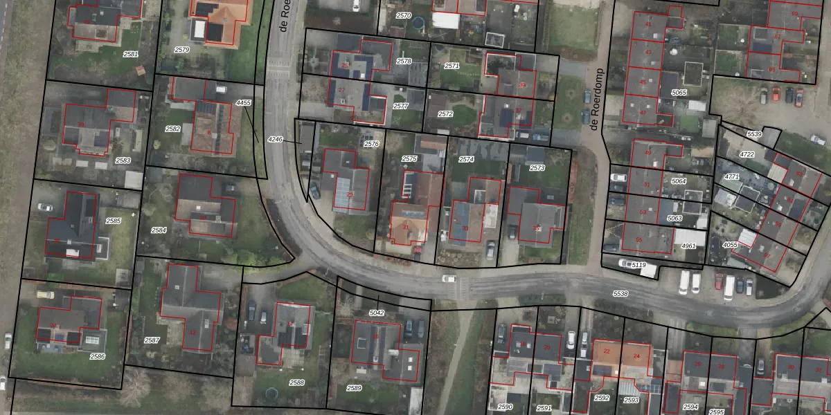 de Roerdomp 31 is gelegen op kadastraal perceel DNK00O2575. Deze kadastrale aanduiding is uniek en wordt gebruikt door het Kadaster om eigendomsrechten en andere zakelijke rechten vast te leggen. Het perceel maakt onderdeel uit van de kadastrale gemeente Denekamp.