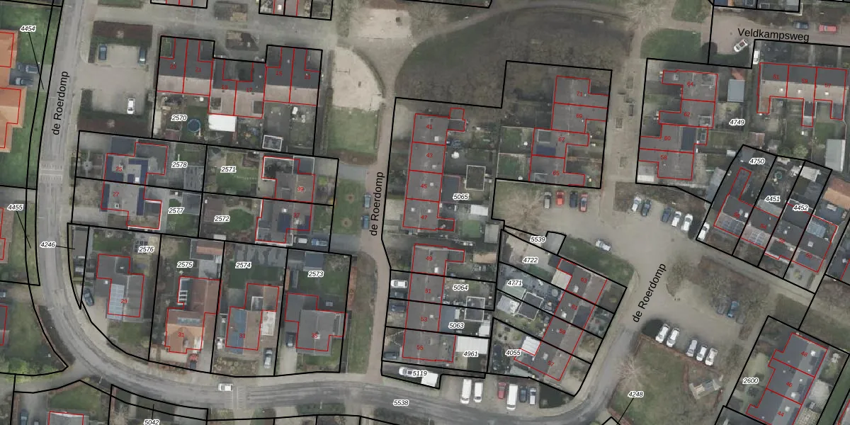 de Roerdomp 47 is gelegen op kadastraal perceel DNK00O5065. Deze kadastrale aanduiding is uniek en wordt gebruikt door het Kadaster om eigendomsrechten en andere zakelijke rechten vast te leggen. Het perceel maakt onderdeel uit van de kadastrale gemeente Denekamp.