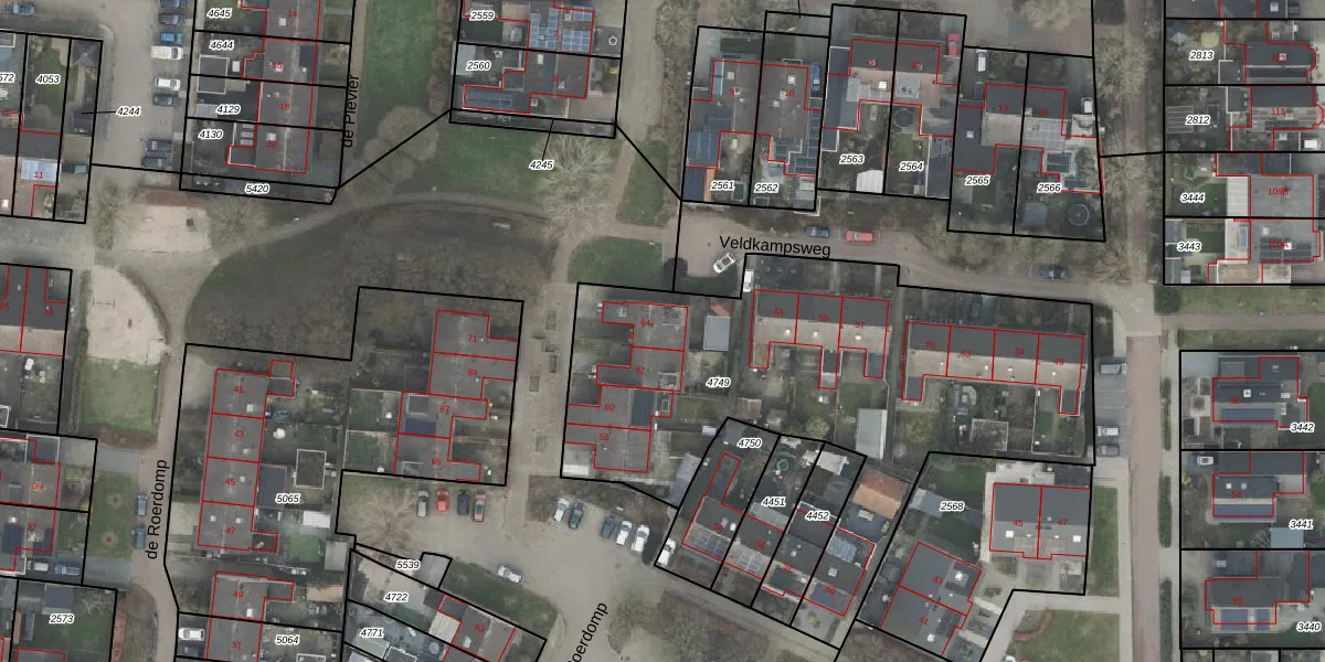 de Roerdomp 64 is gelegen op kadastraal perceel DNK00O4749. Deze kadastrale aanduiding is uniek en wordt gebruikt door het Kadaster om eigendomsrechten en andere zakelijke rechten vast te leggen. Het perceel maakt onderdeel uit van de kadastrale gemeente Denekamp.