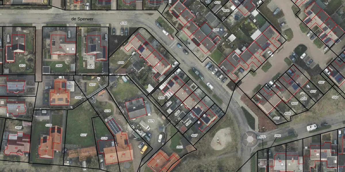 Gebruik de zoekbalk of klik op een perceel voor informatie over de adressen binnen dit perceel.