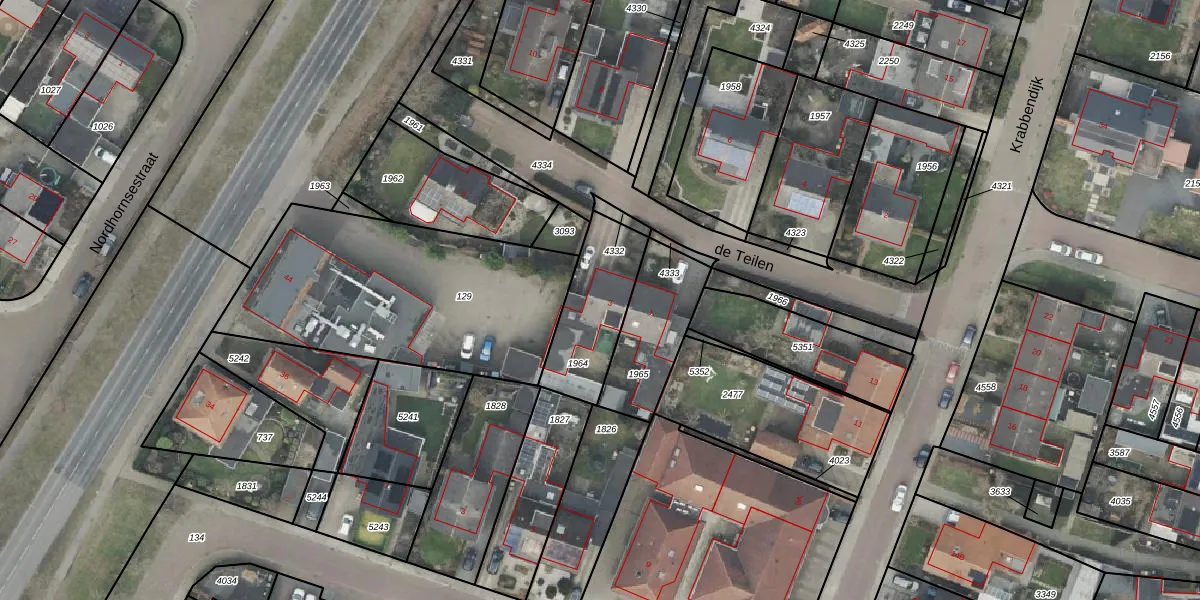 Het perceel waarop de Teilen 3 staat heeft een oppervlakte van 313 m². Dit is een groot perceel. De perceeloppervlakte wordt geregistreerd door het Kadaster. Gedetailleerde informatie over de maten van dit perceel kunt u vinden in het rapport Kadastrale kaart met maatvoering van de Teilen 3.