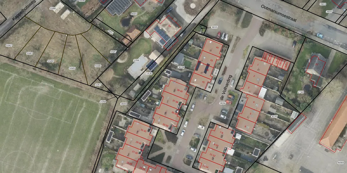 de Volharding 40 is gelegen op kadastraal perceel DNK00O3034. Deze kadastrale aanduiding is uniek en wordt gebruikt door het Kadaster om eigendomsrechten en andere zakelijke rechten vast te leggen. Het perceel maakt onderdeel uit van de kadastrale gemeente Denekamp.