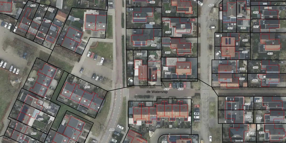 Het perceel waarop de Watersnip 1 staat heeft een oppervlakte van 250 m². Dit is een middelgroot perceel. De perceeloppervlakte wordt geregistreerd door het Kadaster. Gedetailleerde informatie over de maten van dit perceel kunt u vinden in het rapport Kadastrale kaart met maatvoering van de Watersnip 1.
