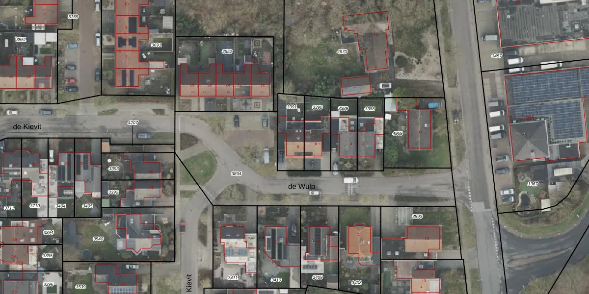 Gebruik de zoekbalk of klik op een perceel voor informatie over de adressen binnen dit perceel.