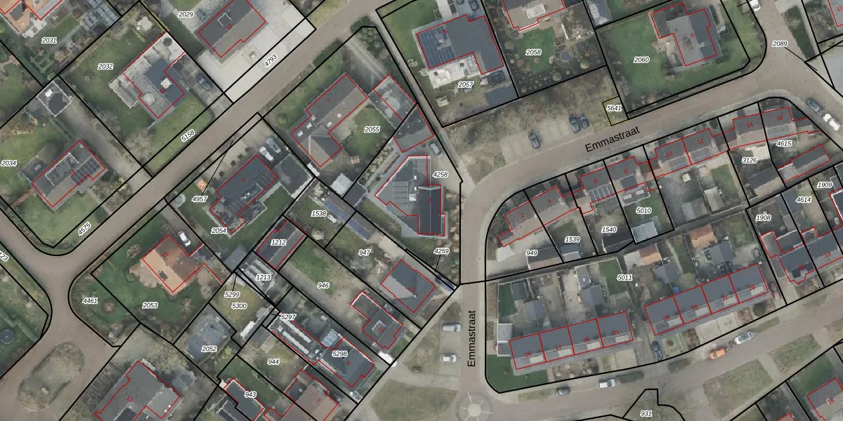 Het perceel waarop Emmastraat 1 staat heeft een oppervlakte van 654 m². Dit is een groot perceel. De perceeloppervlakte wordt geregistreerd door het Kadaster. Gedetailleerde informatie over de maten van dit perceel kunt u vinden in het rapport Kadastrale kaart met maatvoering van Emmastraat 1.