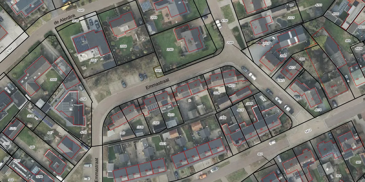 Emmastraat 10 is gelegen op kadastraal perceel DNK00O5011. Deze kadastrale aanduiding is uniek en wordt gebruikt door het Kadaster om eigendomsrechten en andere zakelijke rechten vast te leggen. Het perceel maakt onderdeel uit van de kadastrale gemeente Denekamp.