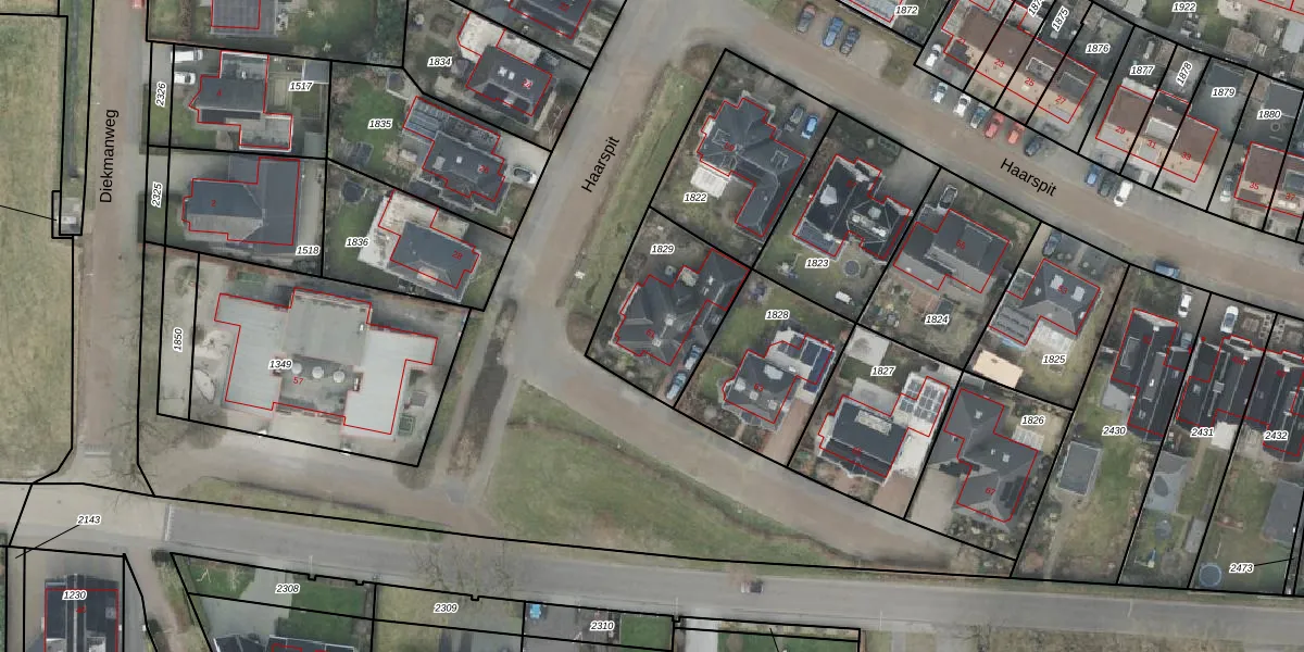 Het perceel waarop Haarspit 61 staat heeft een oppervlakte van 422 m². Dit is een groot perceel. De perceeloppervlakte wordt geregistreerd door het Kadaster. Gedetailleerde informatie over de maten van dit perceel kunt u vinden in het rapport Kadastrale kaart met maatvoering van Haarspit 61.
