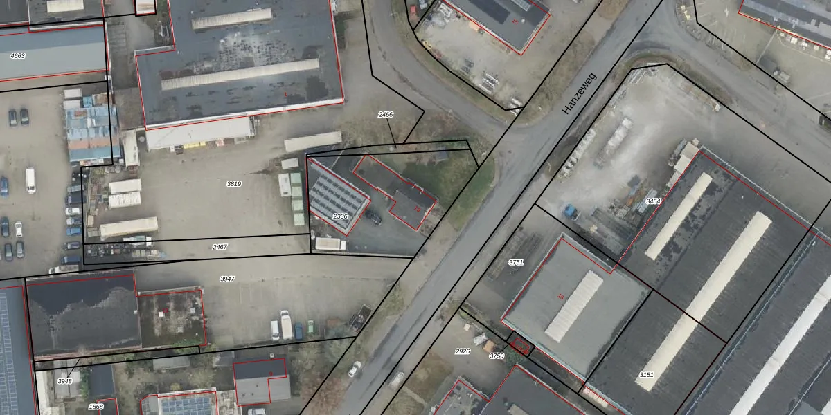 Het perceel waarop Hanzeweg 13 staat heeft een oppervlakte van 845 m². Dit is een groot perceel. De perceeloppervlakte wordt geregistreerd door het Kadaster. Gedetailleerde informatie over de maten van dit perceel kunt u vinden in het rapport Kadastrale kaart met maatvoering van Hanzeweg 13.