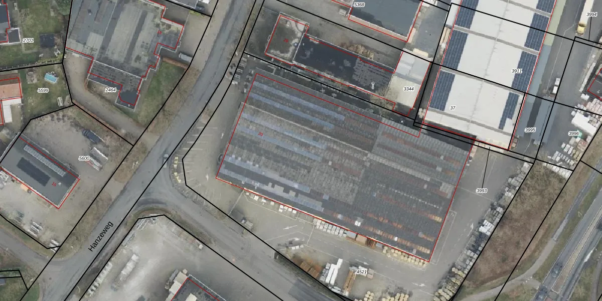 Het perceel waarop Hanzeweg 20 staat heeft een oppervlakte van 5830 m². Dit is een zeer groot perceel. De perceeloppervlakte wordt geregistreerd door het Kadaster. Gedetailleerde informatie over de maten van dit perceel kunt u vinden in het rapport Kadastrale kaart met maatvoering van Hanzeweg 20.