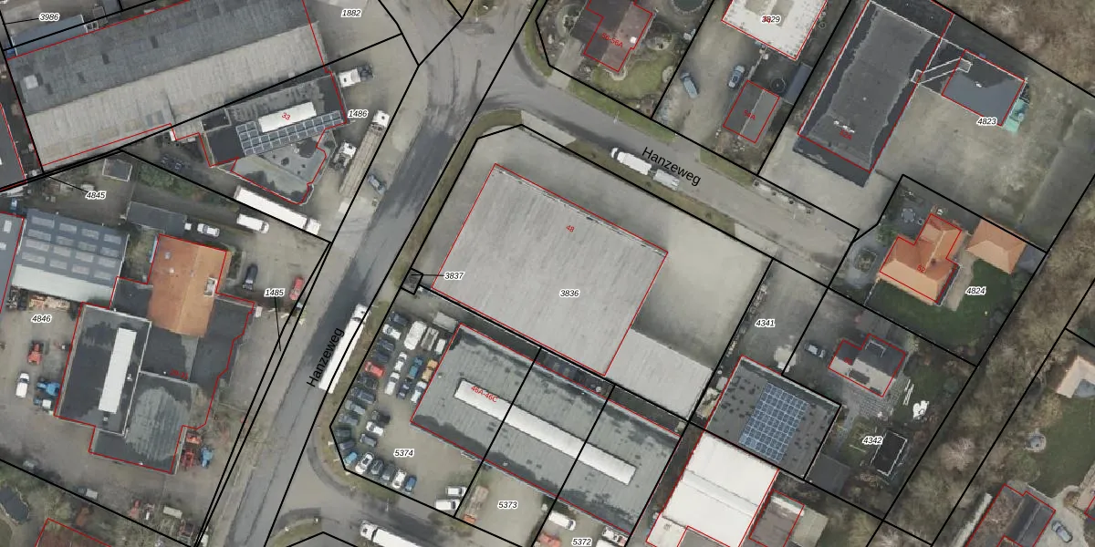 Hanzeweg 48 is gelegen op kadastraal perceel DNK00O3836. Deze kadastrale aanduiding is uniek en wordt gebruikt door het Kadaster om eigendomsrechten en andere zakelijke rechten vast te leggen. Het perceel maakt onderdeel uit van de kadastrale gemeente Denekamp.