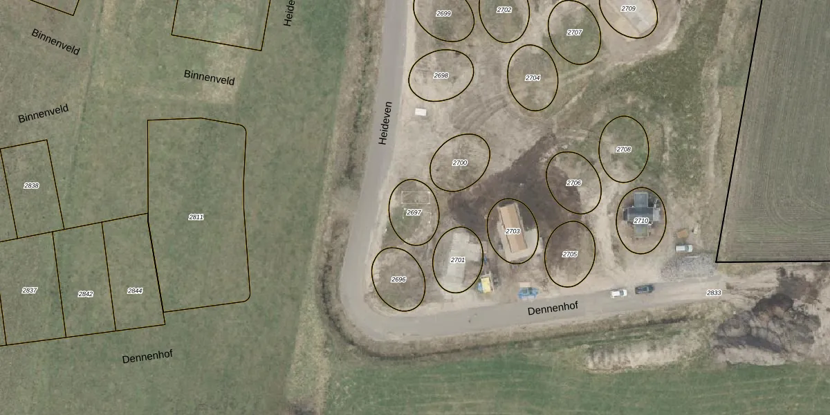 Heideven 27-TH is gelegen op kadastraal perceel DNK00P2697. Deze kadastrale aanduiding is uniek en wordt gebruikt door het Kadaster om eigendomsrechten en andere zakelijke rechten vast te leggen. Het perceel maakt onderdeel uit van de kadastrale gemeente Denekamp.