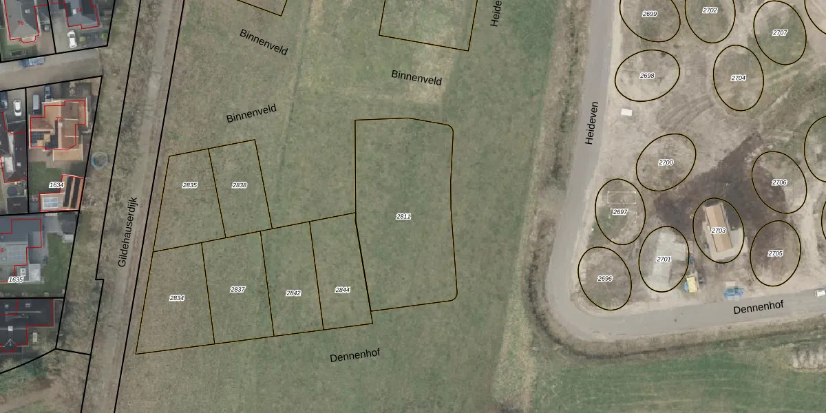 Heideven 34-A is gelegen op kadastraal perceel DNK00P2811. Deze kadastrale aanduiding is uniek en wordt gebruikt door het Kadaster om eigendomsrechten en andere zakelijke rechten vast te leggen. Het perceel maakt onderdeel uit van de kadastrale gemeente Denekamp.