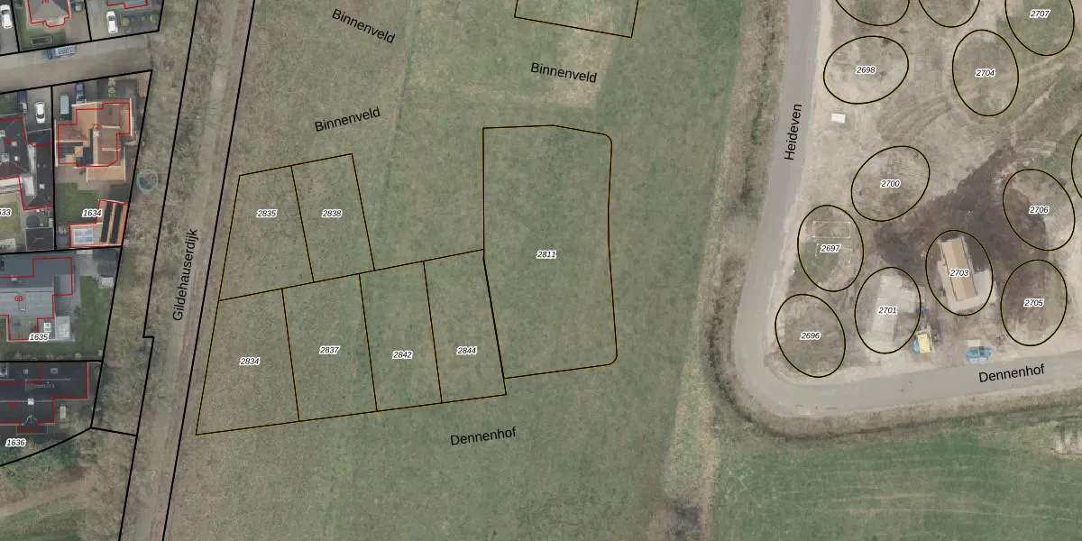 Heideven 36-B is gelegen op kadastraal perceel DNK00P2811. Deze kadastrale aanduiding is uniek en wordt gebruikt door het Kadaster om eigendomsrechten en andere zakelijke rechten vast te leggen. Het perceel maakt onderdeel uit van de kadastrale gemeente Denekamp.
