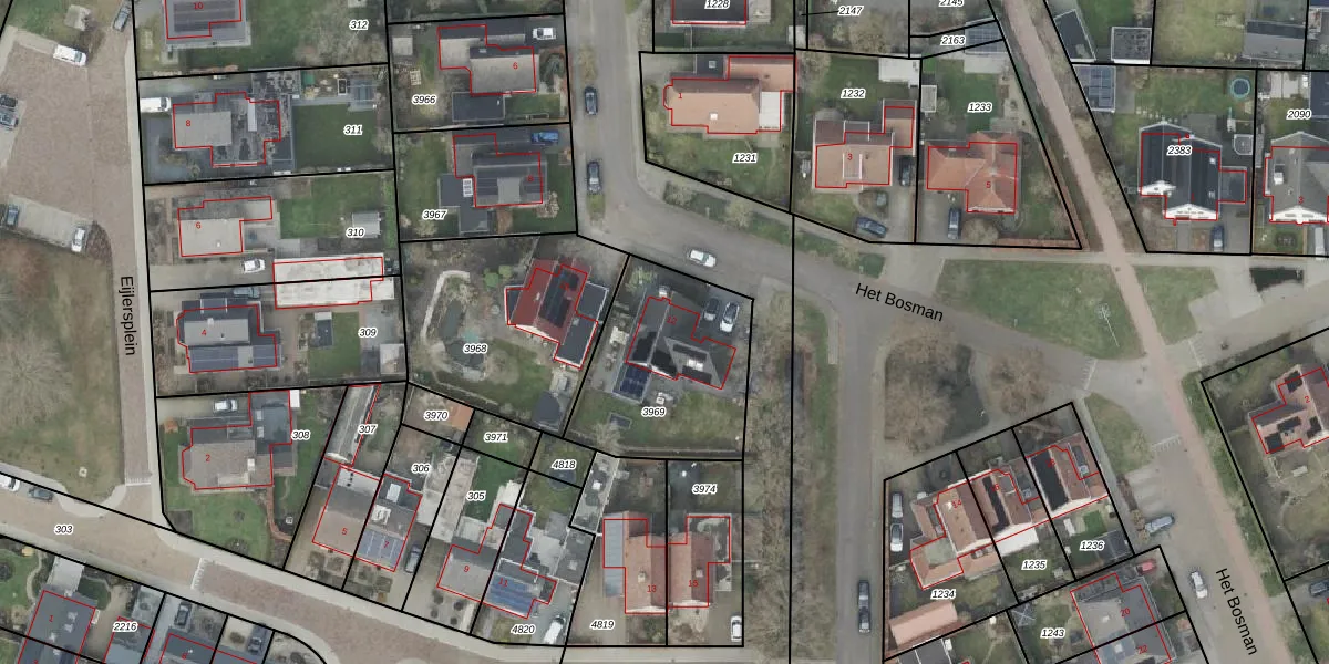 Het perceel waarop Het Bosman 12 staat heeft een oppervlakte van 650 m². Dit is een groot perceel. De perceeloppervlakte wordt geregistreerd door het Kadaster. Gedetailleerde informatie over de maten van dit perceel kunt u vinden in het rapport Kadastrale kaart met maatvoering van Het Bosman 12.