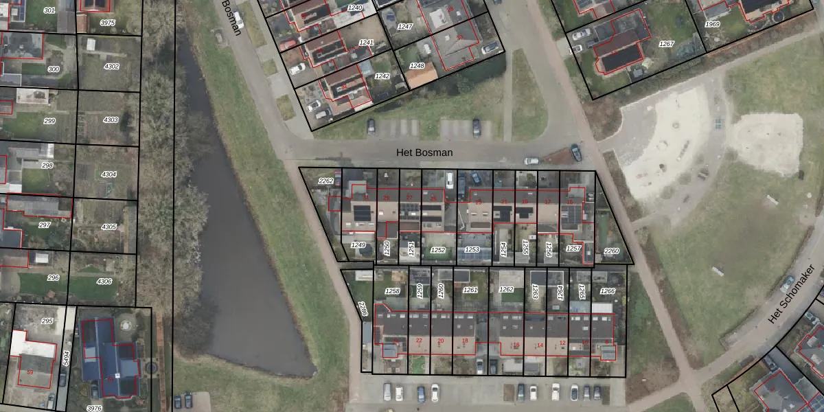 Gebruik de zoekbalk of klik op een perceel voor informatie over de adressen binnen dit perceel.