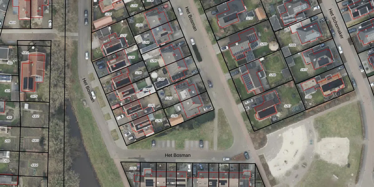 Gebruik de zoekbalk of klik op een perceel voor informatie over de adressen binnen dit perceel.