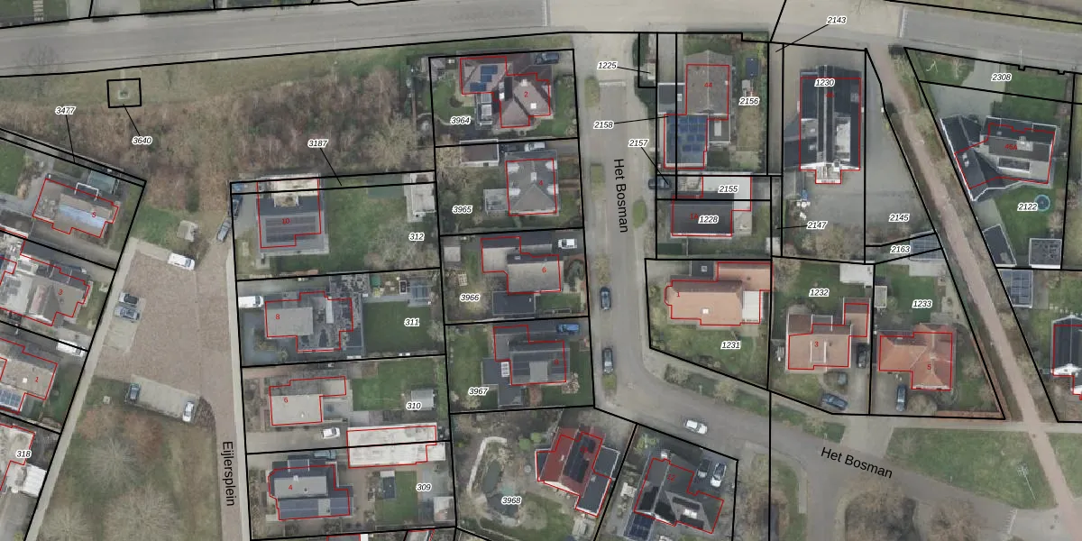 Het perceel waarop Het Bosman 6 staat heeft een oppervlakte van 440 m². Dit is een groot perceel. De perceeloppervlakte wordt geregistreerd door het Kadaster. Gedetailleerde informatie over de maten van dit perceel kunt u vinden in het rapport Kadastrale kaart met maatvoering van Het Bosman 6.