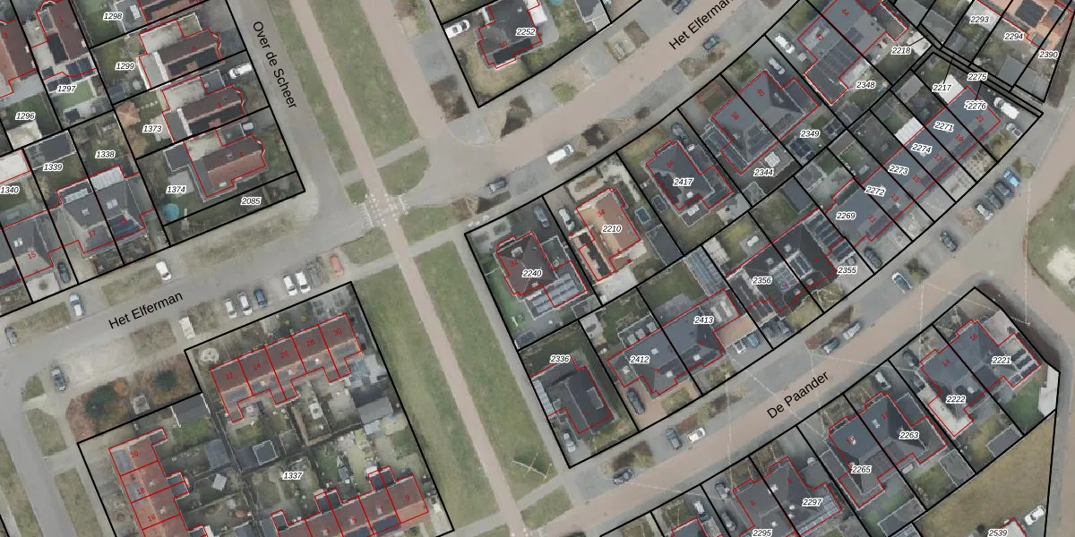 Gebruik de zoekbalk of klik op een perceel voor informatie over de adressen binnen dit perceel.