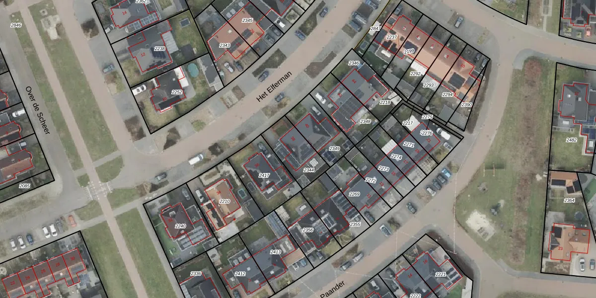 Gebruik de zoekbalk of klik op een perceel voor informatie over de adressen binnen dit perceel.