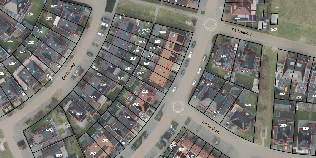 Gebruik de zoekbalk of klik op een perceel voor informatie over de adressen binnen dit perceel.