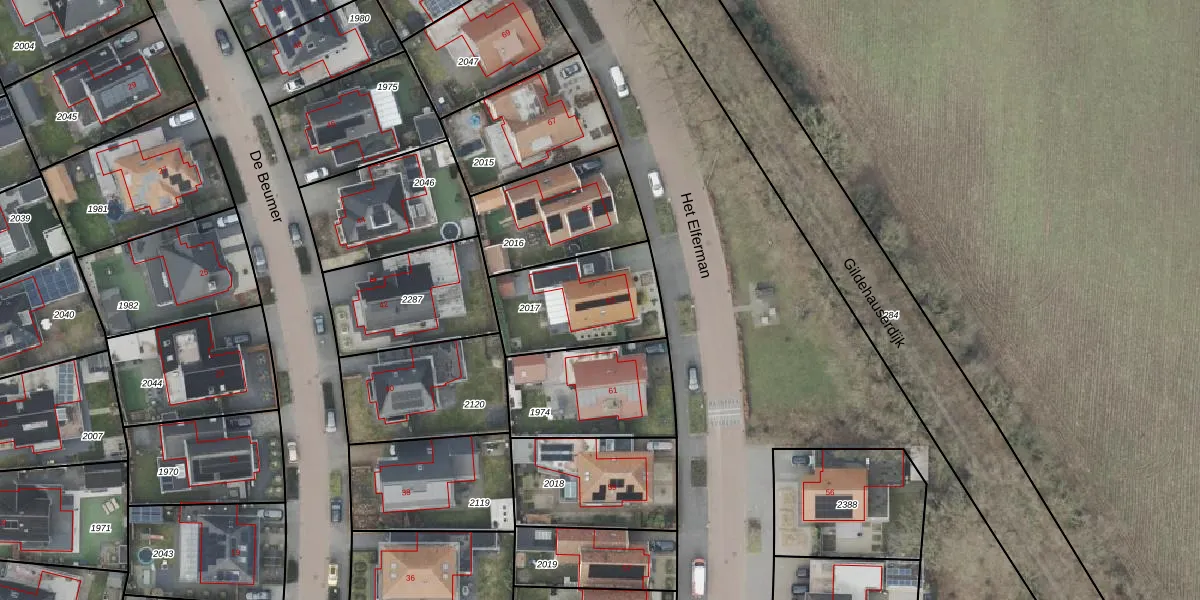 Gebruik de zoekbalk of klik op een perceel voor informatie over de adressen binnen dit perceel.