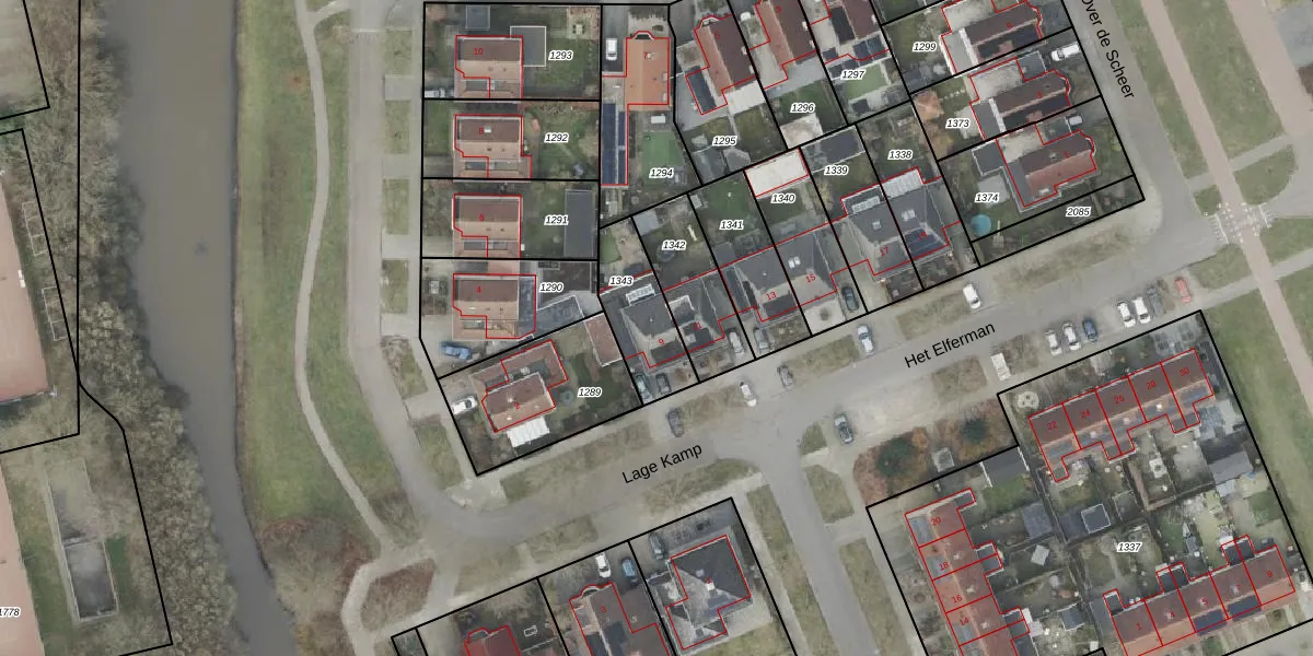 Gebruik de zoekbalk of klik op een perceel voor informatie over de adressen binnen dit perceel.