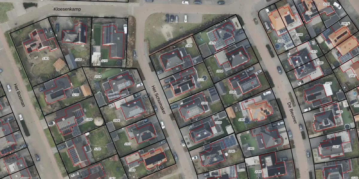 Gebruik de zoekbalk of klik op een perceel voor informatie over de adressen binnen dit perceel.