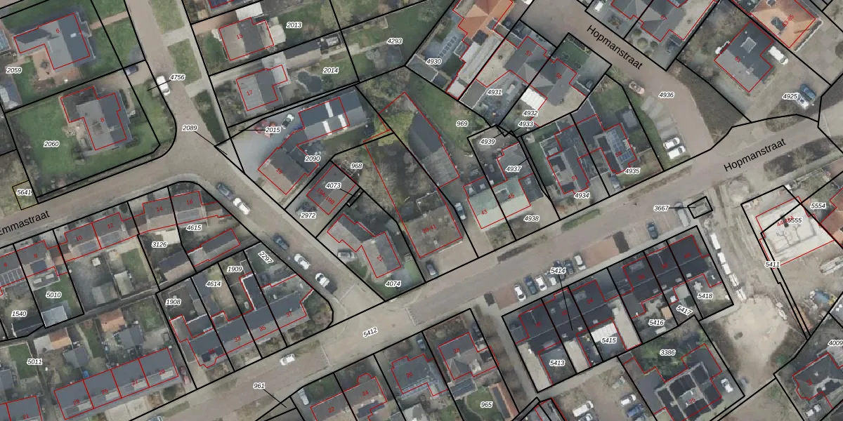 Het perceel waarop Hopmanstraat 39 staat heeft een oppervlakte van 520 m². Dit is een groot perceel. De perceeloppervlakte wordt geregistreerd door het Kadaster. Gedetailleerde informatie over de maten van dit perceel kunt u vinden in het rapport Kadastrale kaart met maatvoering van Hopmanstraat 39.