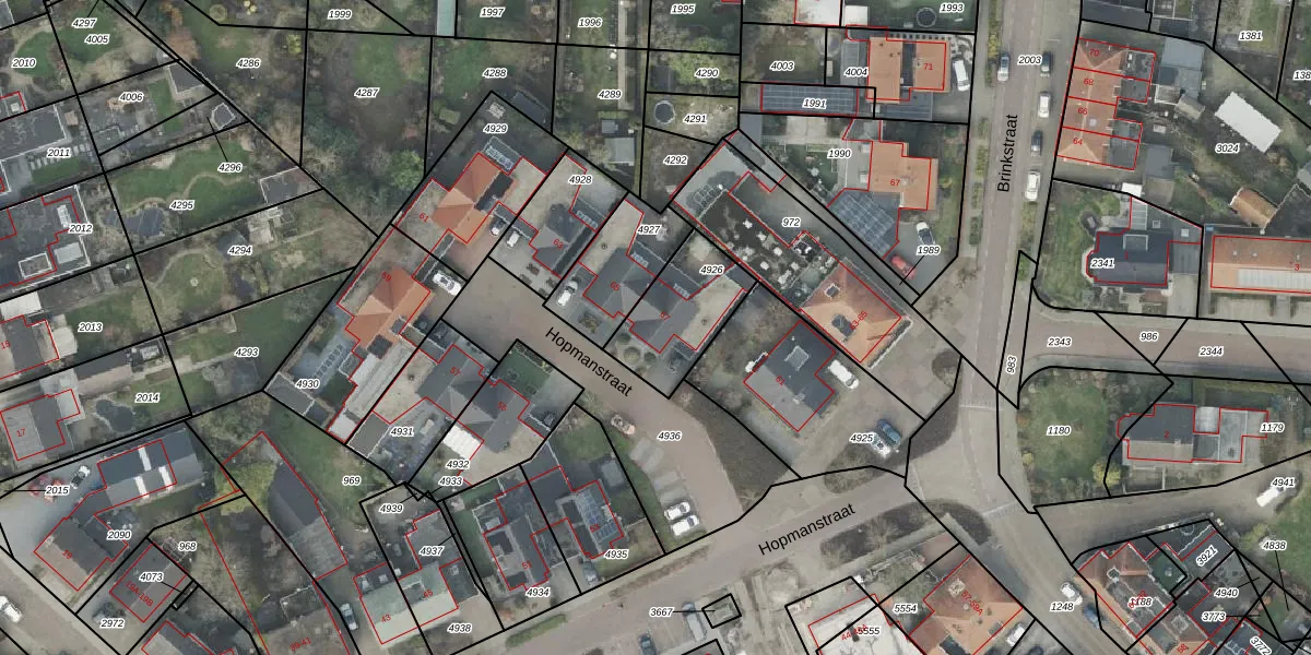 Hopmanstraat 67 is gelegen op kadastraal perceel DNK00O4926. Deze kadastrale aanduiding is uniek en wordt gebruikt door het Kadaster om eigendomsrechten en andere zakelijke rechten vast te leggen. Het perceel maakt onderdeel uit van de kadastrale gemeente Denekamp.