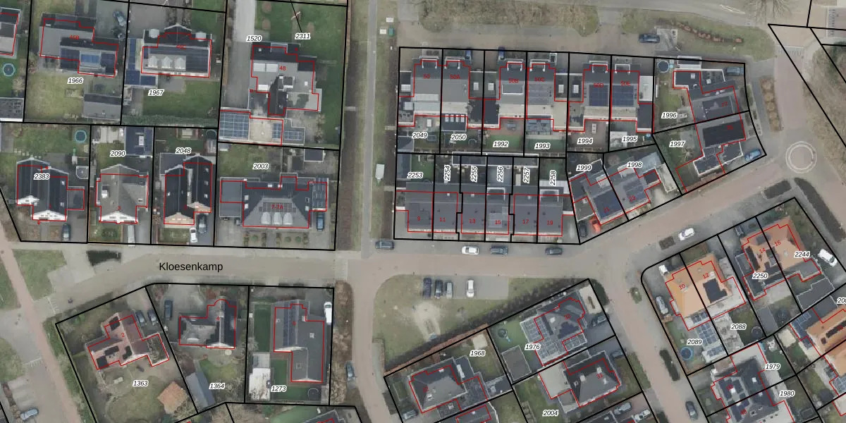 Het perceel waarop Kloesenkamp 9 staat heeft een oppervlakte van 185 m². Dit is een middelgroot perceel. De perceeloppervlakte wordt geregistreerd door het Kadaster. Gedetailleerde informatie over de maten van dit perceel kunt u vinden in het rapport Kadastrale kaart met maatvoering van Kloesenkamp 9.