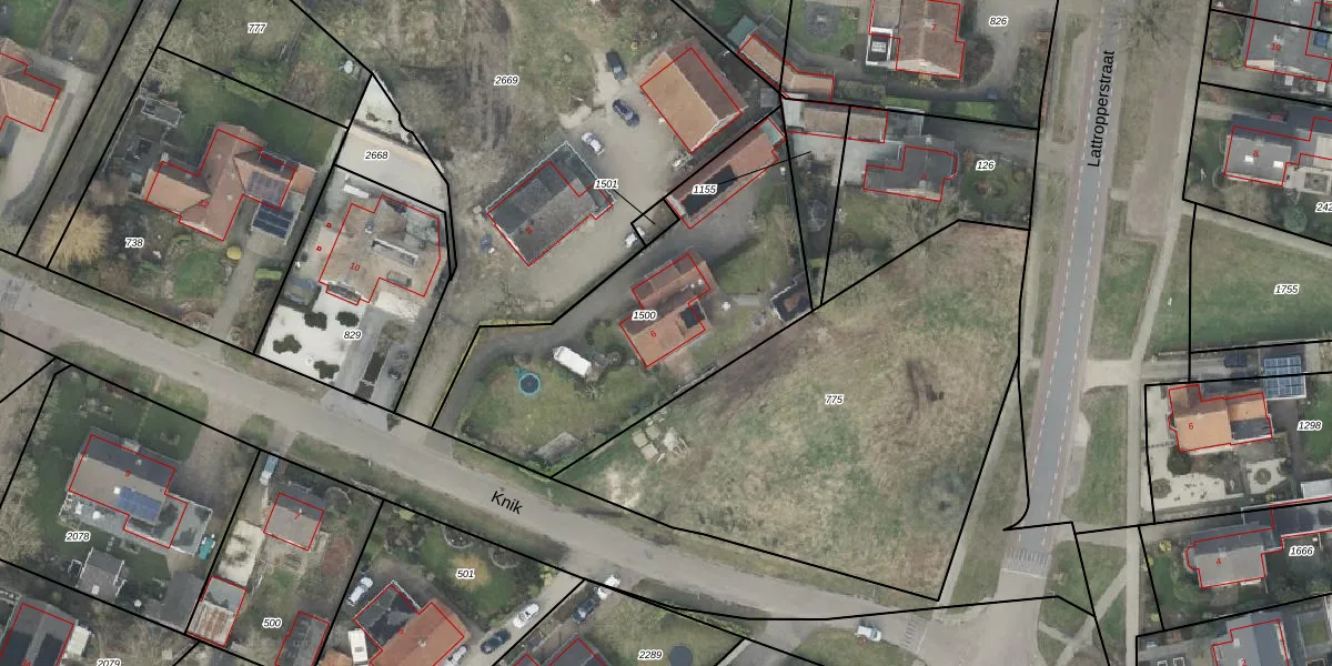 Knik 6 is gelegen op kadastraal perceel DNK00P1500. Deze kadastrale aanduiding is uniek en wordt gebruikt door het Kadaster om eigendomsrechten en andere zakelijke rechten vast te leggen. Het perceel maakt onderdeel uit van de kadastrale gemeente Denekamp.