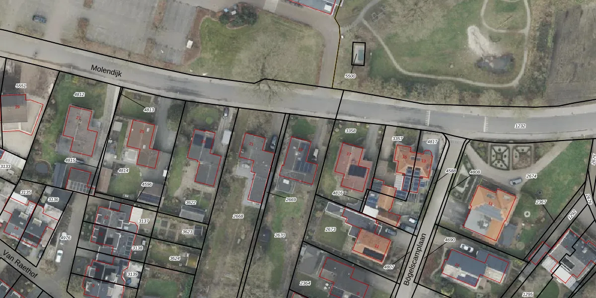 Het perceel waarop Molendijk 19 staat heeft een oppervlakte van 1040 m². Dit is een zeer groot perceel. De perceeloppervlakte wordt geregistreerd door het Kadaster. Gedetailleerde informatie over de maten van dit perceel kunt u vinden in het rapport Kadastrale kaart met maatvoering van Molendijk 19.