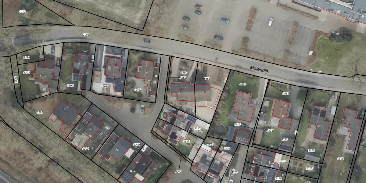 Het perceel waarop Molendijk 29-A staat heeft een oppervlakte van 418 m². Dit is een groot perceel. De perceeloppervlakte wordt geregistreerd door het Kadaster. Gedetailleerde informatie over de maten van dit perceel kunt u vinden in het rapport Kadastrale kaart met maatvoering van Molendijk 29-A.