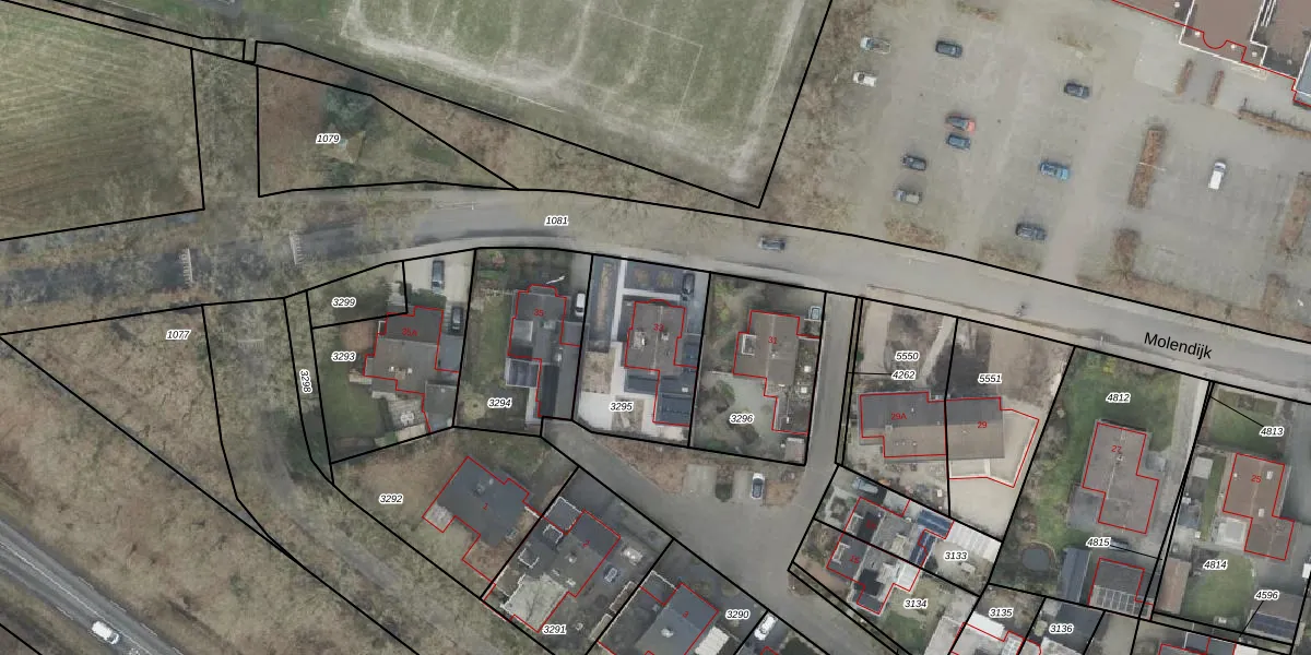 Het perceel waarop Molendijk 33 staat heeft een oppervlakte van 486 m². Dit is een groot perceel. De perceeloppervlakte wordt geregistreerd door het Kadaster. Gedetailleerde informatie over de maten van dit perceel kunt u vinden in het rapport Kadastrale kaart met maatvoering van Molendijk 33.