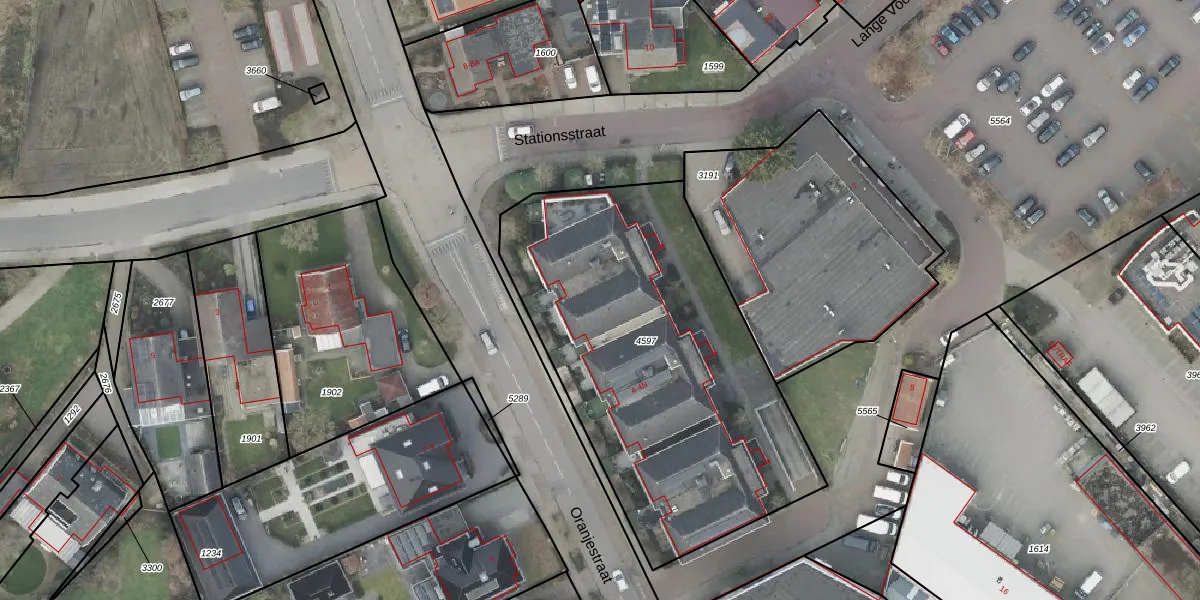 Het perceel waarop Oranjestraat 4-D staat heeft een oppervlakte van 2000 m². Dit is een zeer groot perceel. De perceeloppervlakte wordt geregistreerd door het Kadaster. Gedetailleerde informatie over de maten van dit perceel kunt u vinden in het rapport Kadastrale kaart met maatvoering van Oranjestraat 4-D.