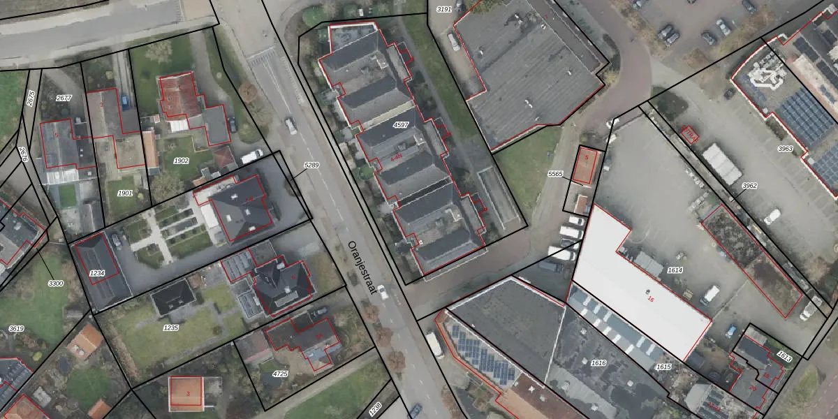 Het perceel waarop Oranjestraat 4-G staat heeft een oppervlakte van 2000 m². Dit is een zeer groot perceel. De perceeloppervlakte wordt geregistreerd door het Kadaster. Gedetailleerde informatie over de maten van dit perceel kunt u vinden in het rapport Kadastrale kaart met maatvoering van Oranjestraat 4-G.