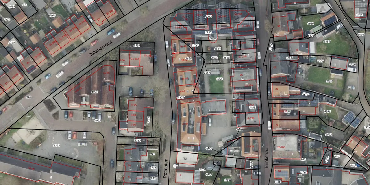 Potmaten 14 is gelegen op kadastraal perceel DNK00O4477. Deze kadastrale aanduiding is uniek en wordt gebruikt door het Kadaster om eigendomsrechten en andere zakelijke rechten vast te leggen. Het perceel maakt onderdeel uit van de kadastrale gemeente Denekamp.