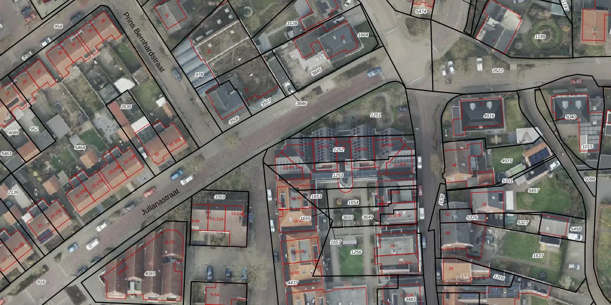Het perceel waarop Potmaten 24 staat heeft een oppervlakte van 380 m². Dit is een groot perceel. De perceeloppervlakte wordt geregistreerd door het Kadaster. Gedetailleerde informatie over de maten van dit perceel kunt u vinden in het rapport Kadastrale kaart met maatvoering van Potmaten 24.