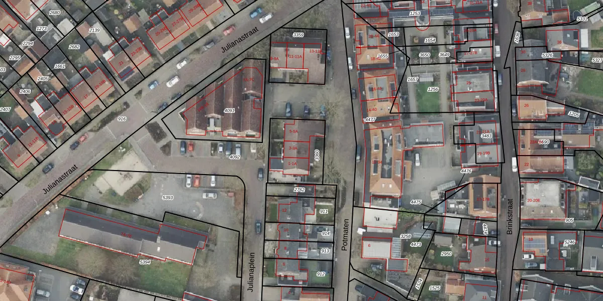 Het perceel waarop Potmaten 3 staat heeft een oppervlakte van 391 m². Dit is een groot perceel. De perceeloppervlakte wordt geregistreerd door het Kadaster. Gedetailleerde informatie over de maten van dit perceel kunt u vinden in het rapport Kadastrale kaart met maatvoering van Potmaten 3.