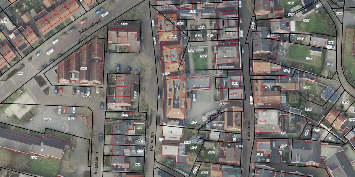 Potmaten 32 is gelegen op kadastraal perceel DNK00O4477. Deze kadastrale aanduiding is uniek en wordt gebruikt door het Kadaster om eigendomsrechten en andere zakelijke rechten vast te leggen. Het perceel maakt onderdeel uit van de kadastrale gemeente Denekamp.