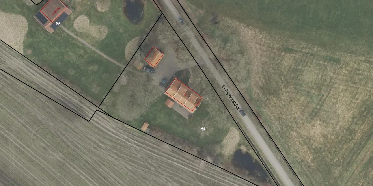 Het perceel waarop Schiphorstdijk 21 staat heeft een oppervlakte van 3518 m². Dit is een zeer groot perceel. De perceeloppervlakte wordt geregistreerd door het Kadaster. Gedetailleerde informatie over de maten van dit perceel kunt u vinden in het rapport Kadastrale kaart met maatvoering van Schiphorstdijk 21.