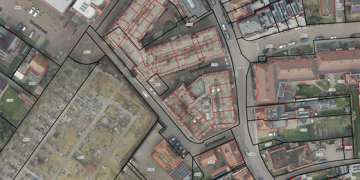 Het perceel waarop Scholtenerf 32 staat heeft een oppervlakte van 2972 m². Dit is een zeer groot perceel. De perceeloppervlakte wordt geregistreerd door het Kadaster. Gedetailleerde informatie over de maten van dit perceel kunt u vinden in het rapport Kadastrale kaart met maatvoering van Scholtenerf 32.