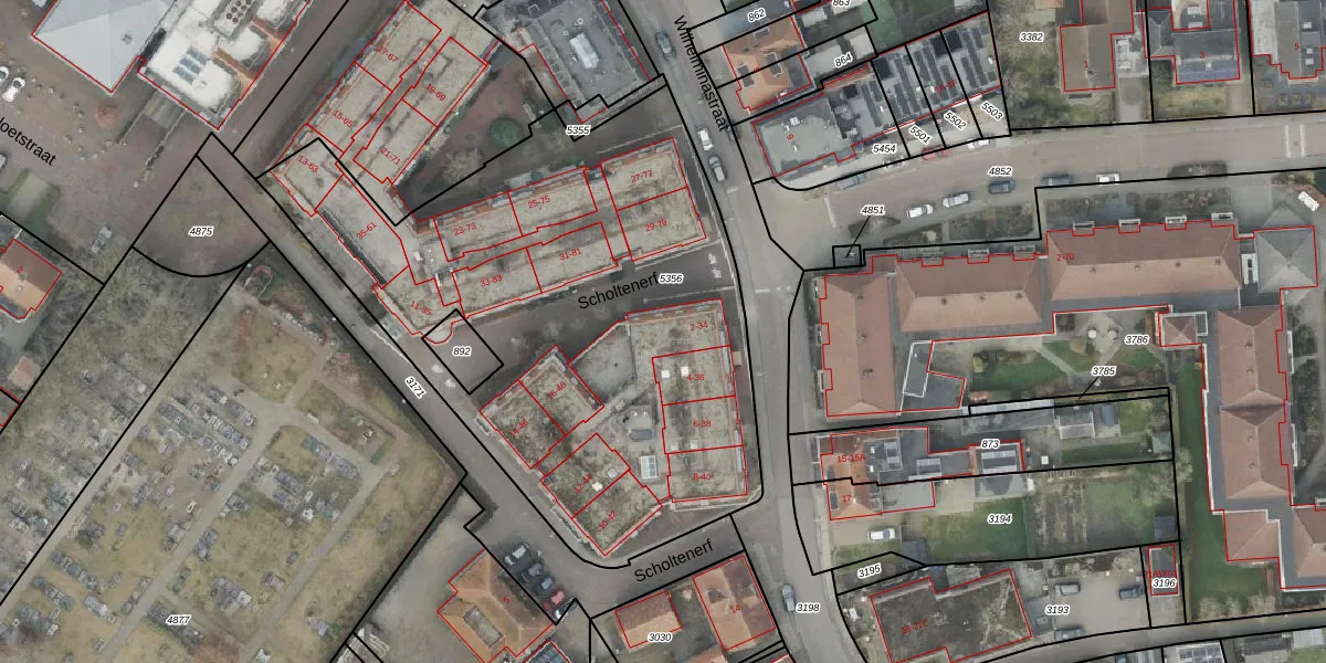 Het perceel waarop Scholtenerf 34 staat heeft een oppervlakte van 2972 m². Dit is een zeer groot perceel. De perceeloppervlakte wordt geregistreerd door het Kadaster. Gedetailleerde informatie over de maten van dit perceel kunt u vinden in het rapport Kadastrale kaart met maatvoering van Scholtenerf 34.