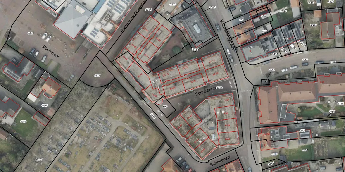Het perceel waarop Scholtenerf 83 staat heeft een oppervlakte van 2972 m². Dit is een zeer groot perceel. De perceeloppervlakte wordt geregistreerd door het Kadaster. Gedetailleerde informatie over de maten van dit perceel kunt u vinden in het rapport Kadastrale kaart met maatvoering van Scholtenerf 83.