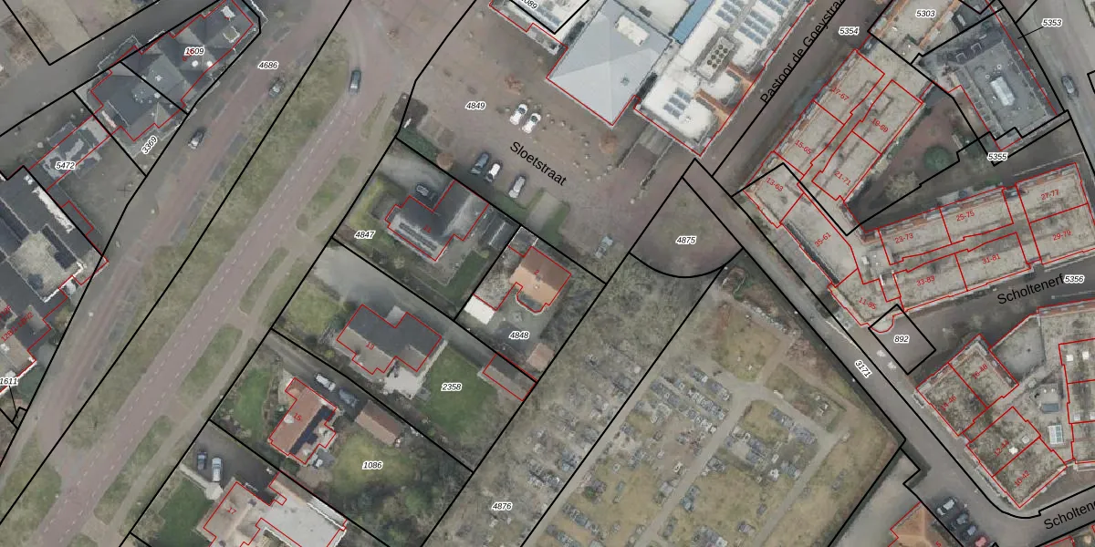 Sloetstraat 2 is gelegen op kadastraal perceel DNK00O4848. Deze kadastrale aanduiding is uniek en wordt gebruikt door het Kadaster om eigendomsrechten en andere zakelijke rechten vast te leggen. Het perceel maakt onderdeel uit van de kadastrale gemeente Denekamp.